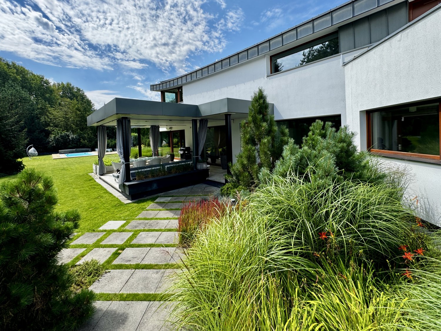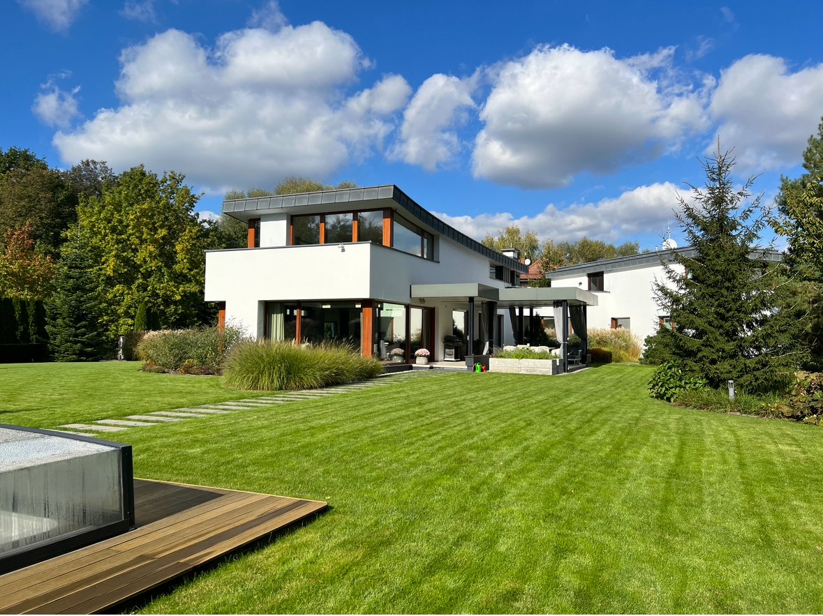 Nowoczesna rezydencja o powierzchni użytkowej 327 m2 na działce 3053 m2 z basenem zewnętrznym.